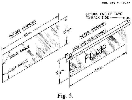 ° Pressure-sensitive waterproof tape, enough to make 30 ft of tape 3/4 in. to 1 in. wide, for securing the hem-tunnels of the flaps: (1st) cloth duct tape (silver tape); (2nd) glass tape; (3rd) scotch tape; (4th) freezer or masking tape, or sew the hem tunnels. (Do not use a tape that stretches: it may shrink afterward and cause the flaps to wrinkle.)