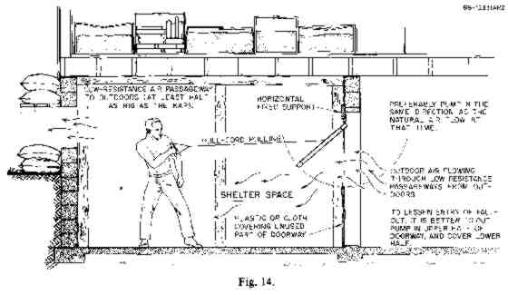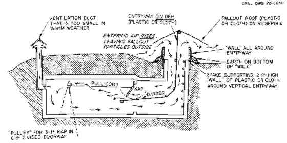Fig. 27. Use of a "divider" to ventilate a shelter with only one opening. ORNL DWG 75-8203