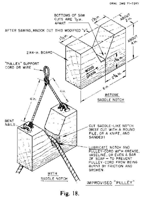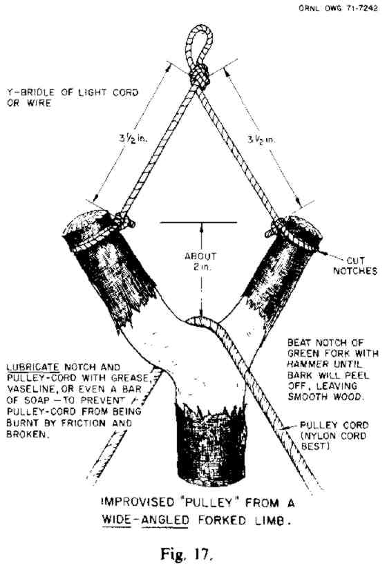 (Such a "pulley" can also be used to operate a bail-bucket to remove water or wastes from some shelters, without anyone having to go outside.)