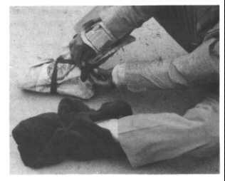 Fig. 15.5. Insulating a foot with a folded newspaper sole and 10 sheets of newspaper.