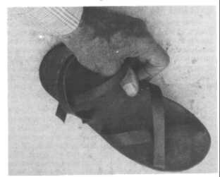 Fig. 15.8. A Ho Chi Minh Sandal, excellent Vietnamese expedient footwear. Rubber bands cut from an inner tube have been inserted into a sole of auto-tire tread.