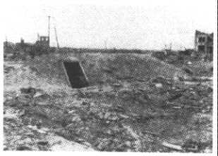 Fig. D. 1. A small, earth-covered backyard shelter with a crude wooden frame-undamaged, although only 300 yards from ground zero at Hiroshima.