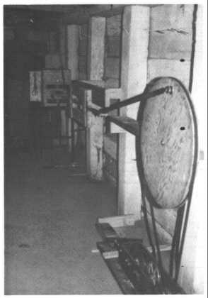 9. Use short pieces of duct tape to temporarily attach the two 12 x 12-in. construction forms to the PARTITION and to side V, (Before using these forms, drive 4 small nails into each form, near its corners, to serve as handles for removing them from the completed "cylinder".) Attach a construction form near each end of the PARTITION.