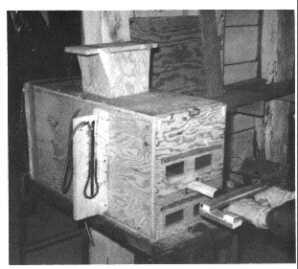 Fig. 3. Pump with Homemade Filter (20 x 20 x 8-inches inside dimensions) connected airtight on top of the pump's 6 x 6-inch air-intake duct.
