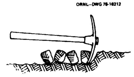 (Illustration of pick axe chipping away a layer of dirt) ORNL-DWG 78-16212