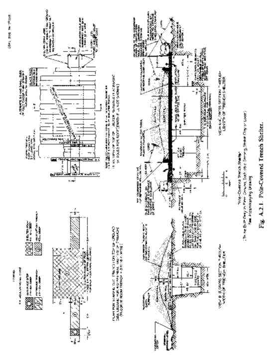 Fig.. A.2.2. Pole-Covered Trench Shelter ORNL DWG 74-11756R