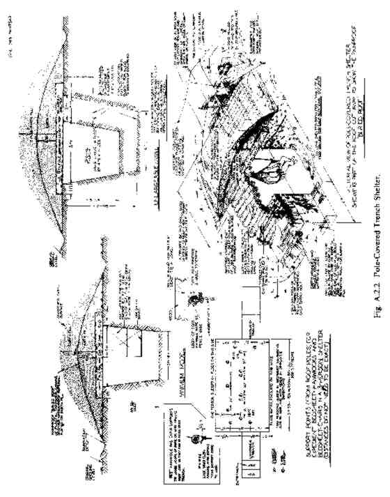 10. Start digging, throwing the first earth about 10 ft beyond the staked outlines of the trench. Less able members of the family should do the easier digging, near the surface. Those members who can use an ax and saw should cut and haul poles. See the introductory section of this appendix for the know-how to make this hard work easier.