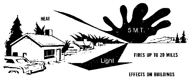 A 20-megaton bomb increases the approximate ranges of damage described above to five, eight, sixteen and twenty-four miles.