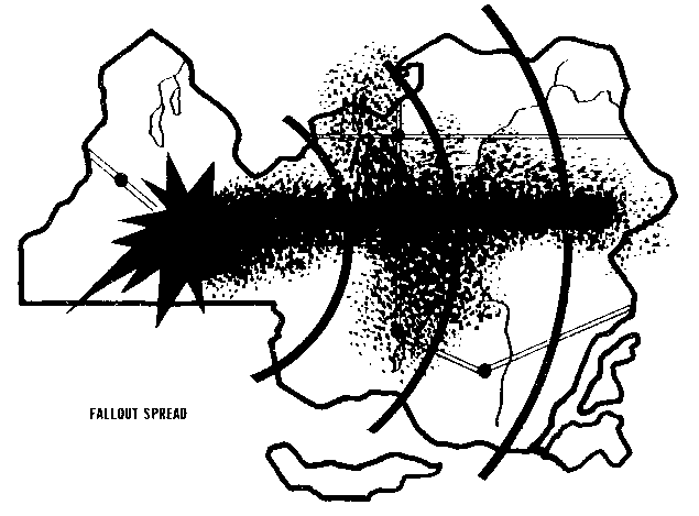 Because fallout is carried so far and covers such a large area, it could be the greatest danger to the largest number of Canadians in a nuclear war. If Canada was not hit by nuclear bombs, those exploding in the United States close to our border could result in serious fallout in many parts of Canada.