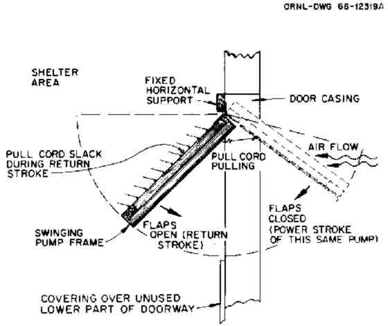 1. To force outdoor air through a shelter, an air- supply KAP usually is operated as an air-intake pump by pulling it with a cord (see Fig. 1). (Only rarely is it necessary to operate a KAP as an air- exhaust pump by pushing it with a pole, as described in the last section of these instructions.)